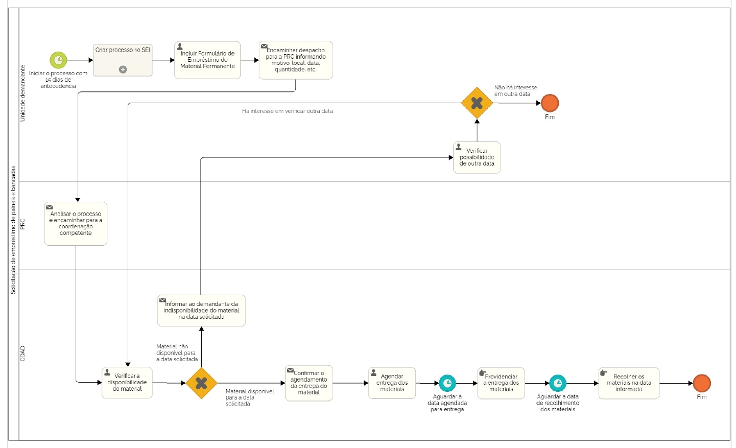 Link: Fluxo para para solicitação de empréstimo de painéis e bancadas